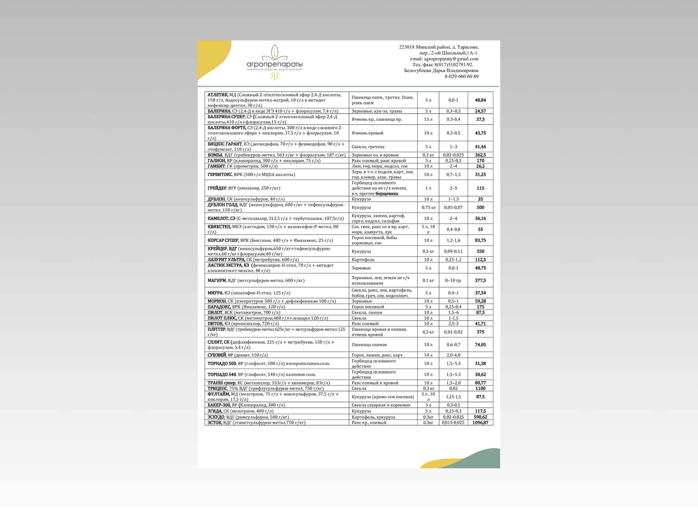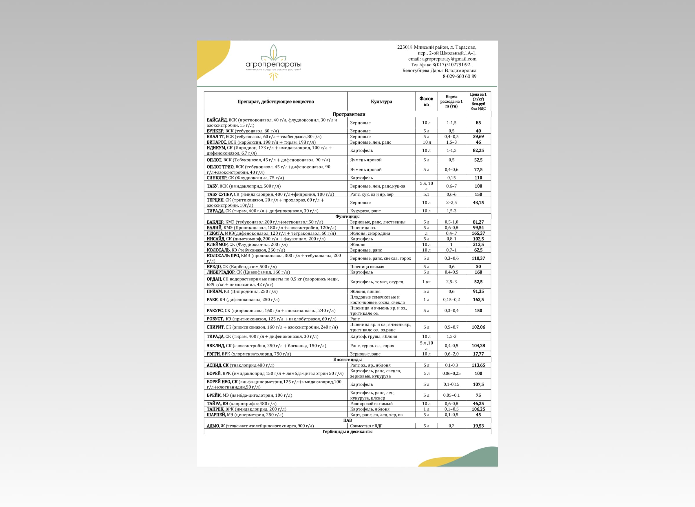 Главная / Портфолио /ООО «Агропрепараты» Прайс лист