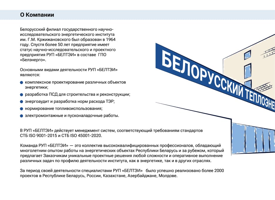 Разработка брошюры для компании «БелТЭИ», занимающейся производством информационных измерительных систем учёта электроэнергии, выполнена с акцентом на технологичность и информативность. Дизайн включает современную графику, схемы и иллюстрации, подчёркивающие инновационность продукции. Цветовая палитра (синий, белый, серый) отражает высокие стандарты и надёжность компании. Структура брошюры обеспечивает удобное восприятие информации, акцентируя внимание на ключевых характеристиках и преимуществах продукции. Эффектный и профессиональный дизайн усиливает доверие к бренду.